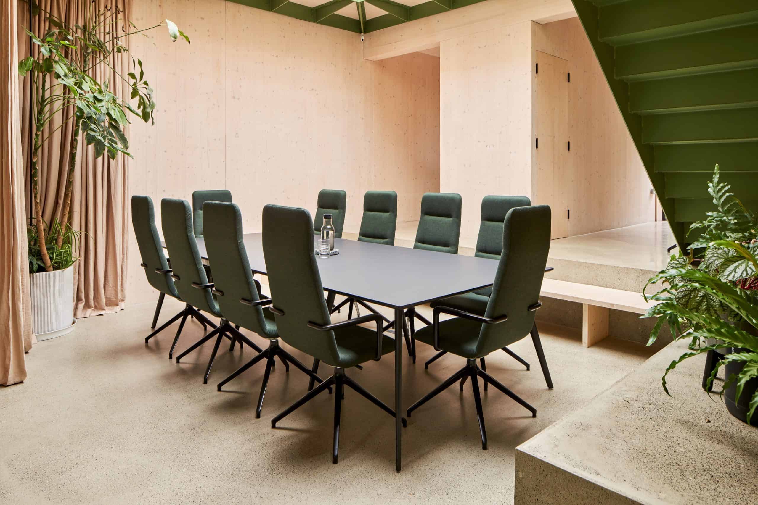 The Air Meeting Table can be made to any dimensions required. Wooden Table legs finished with an Egger laminate top.