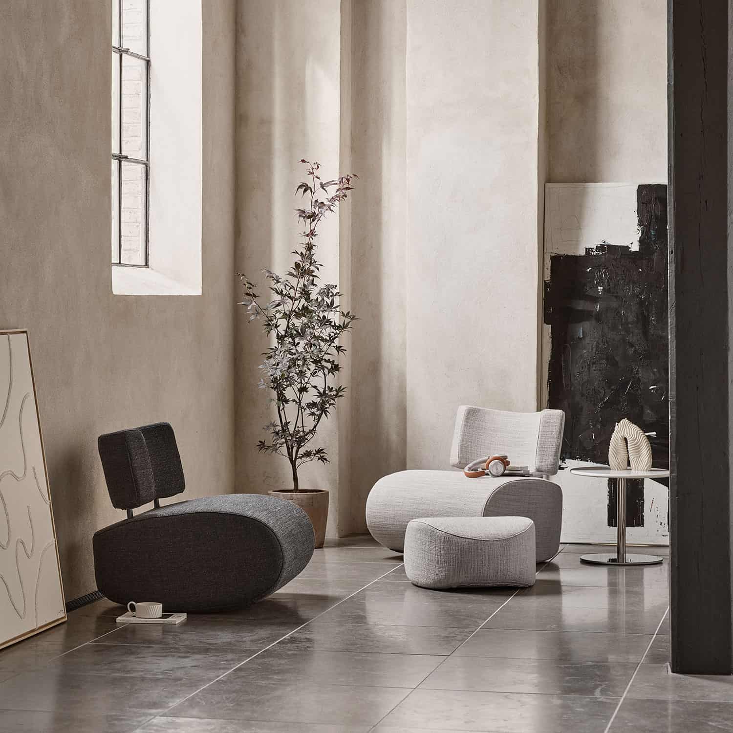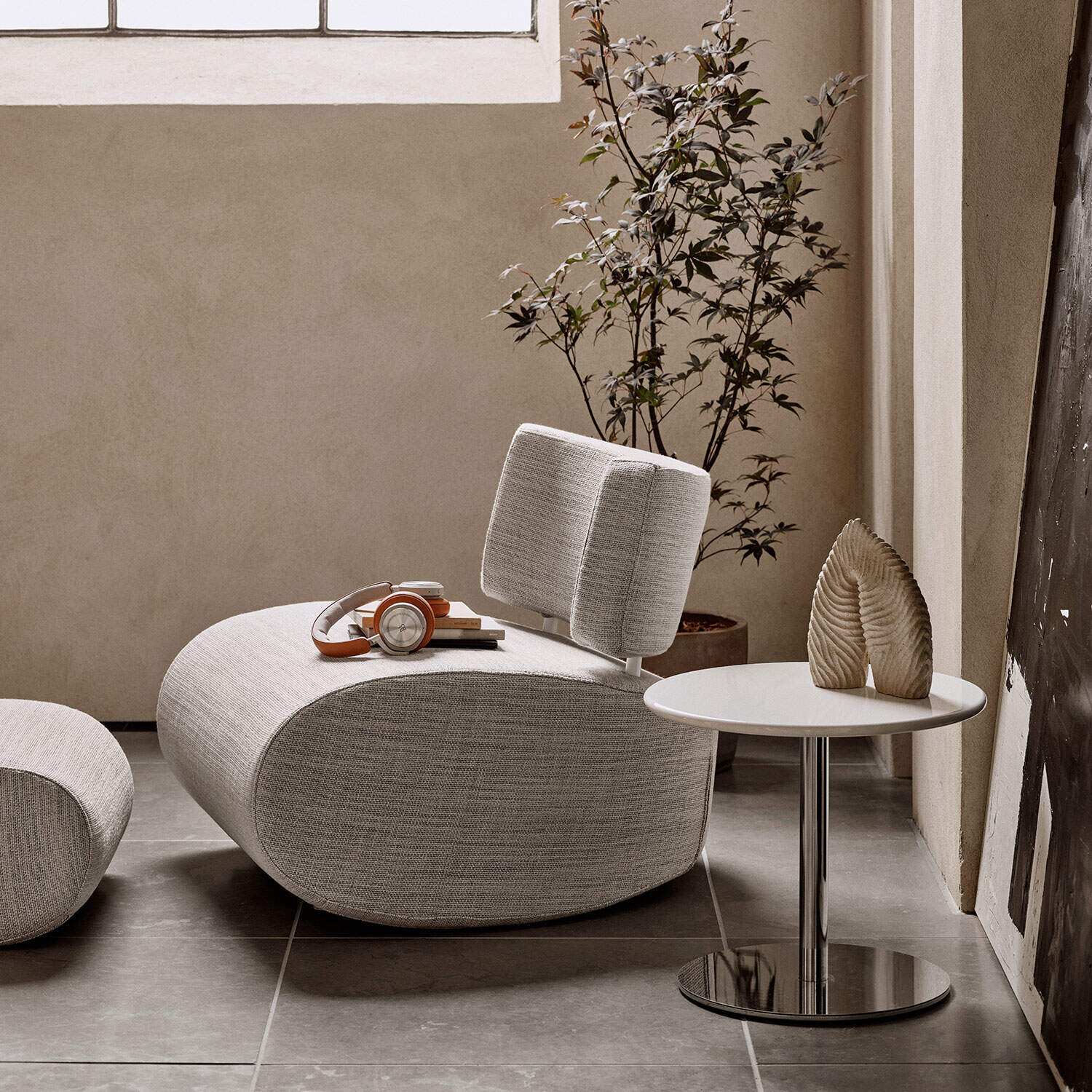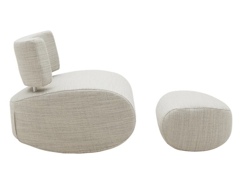 The Apollo footstool is fully upholstered in factory fabrics or COM (COM to be tested first)