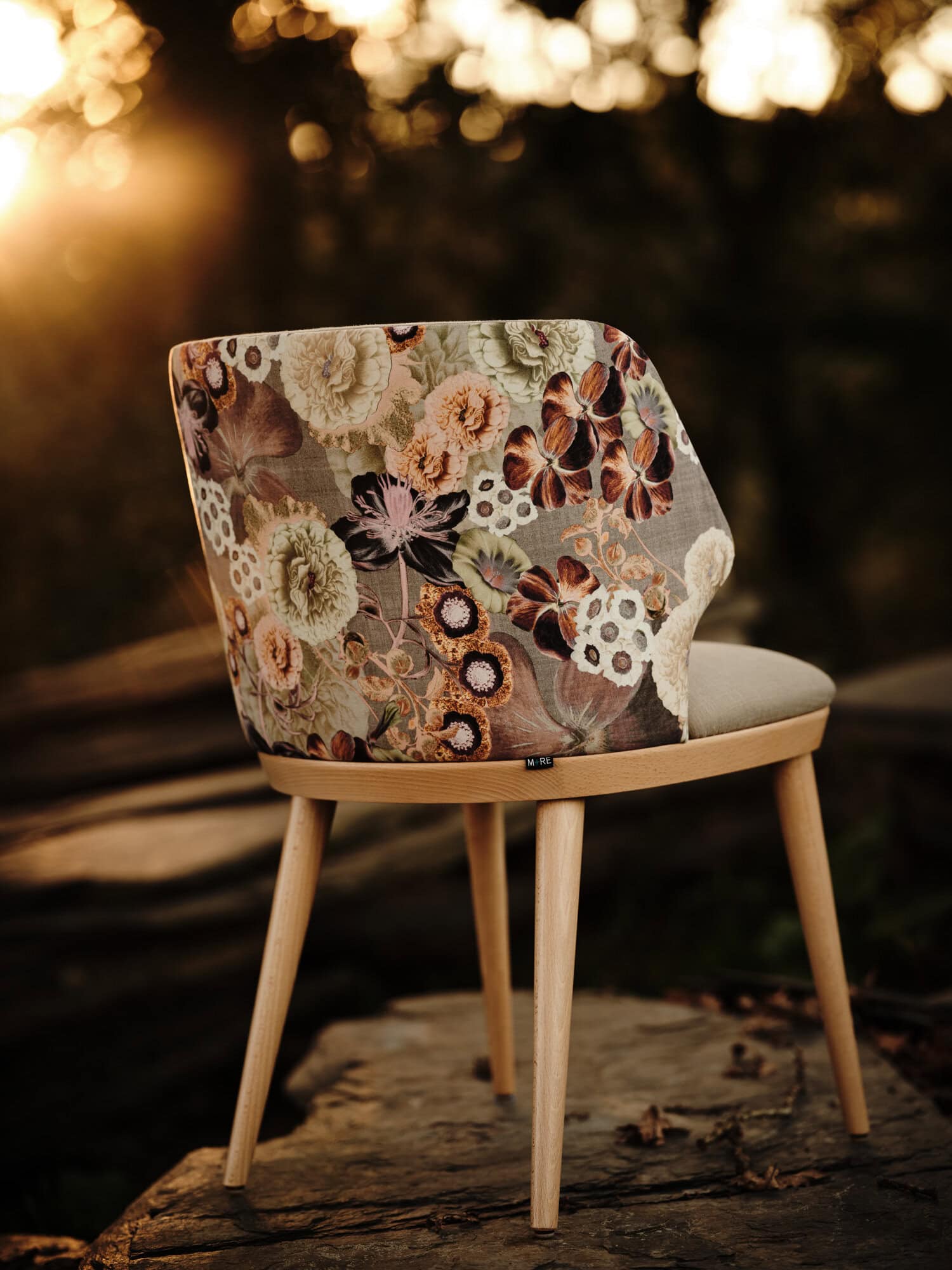 The Ariella side chair has a solid beech frame fully upholstered in various factory fabric/leather or COM.
