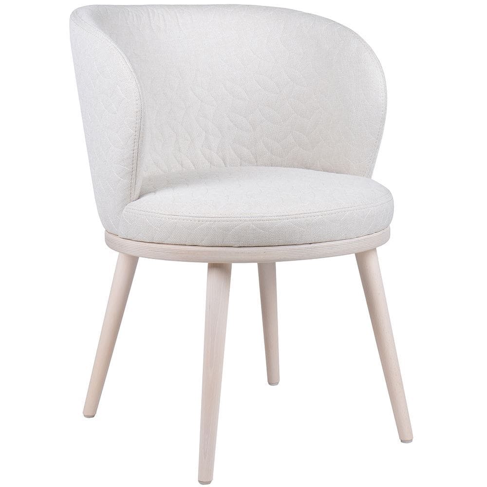 The Bianca Armchair has a fully upholstered seat and back with beech legs stained factory wood stain.