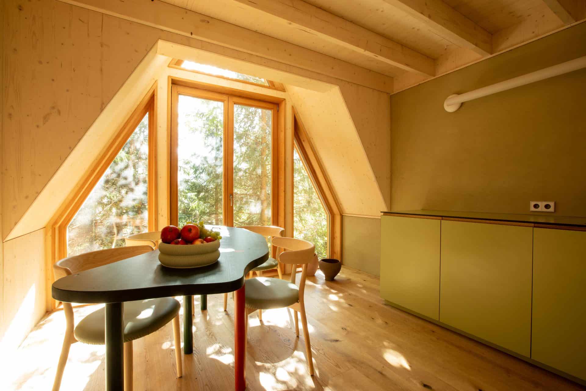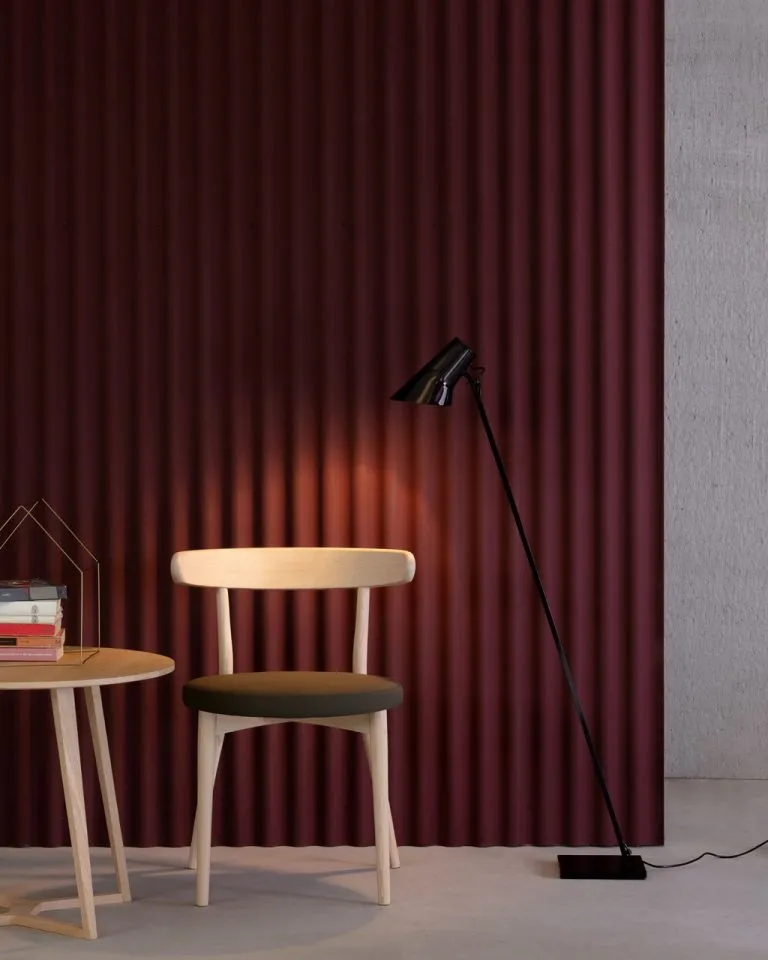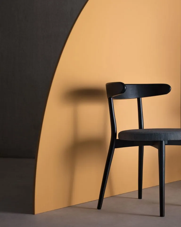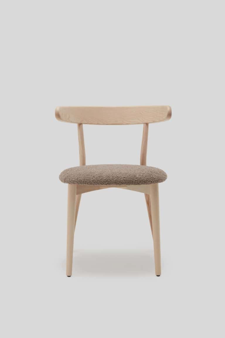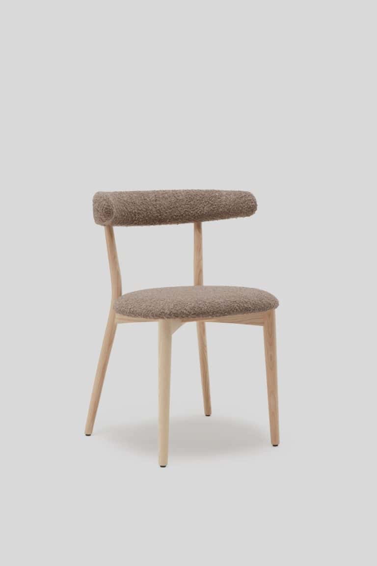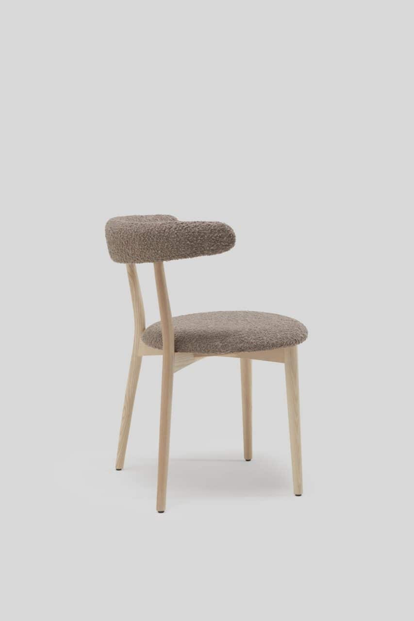 The Bio side chair has a curved ash wood frame with an upholstered seat (upholstered seat back also available at an extra cost)