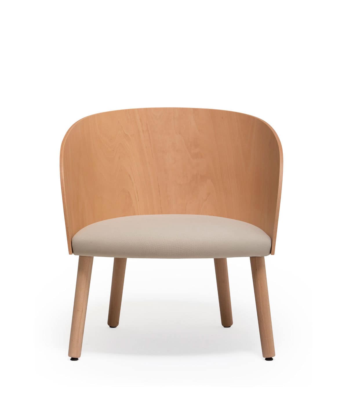 The Cistell lounge chair has an upholstered seat and turned solid ash legs or metal legs.