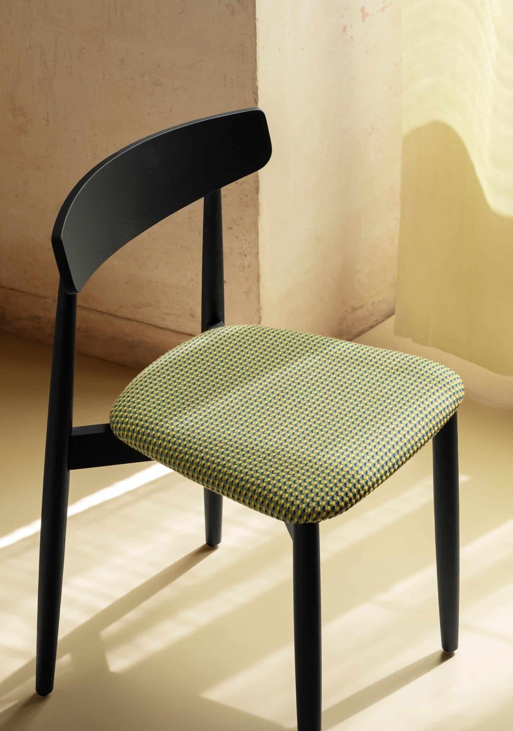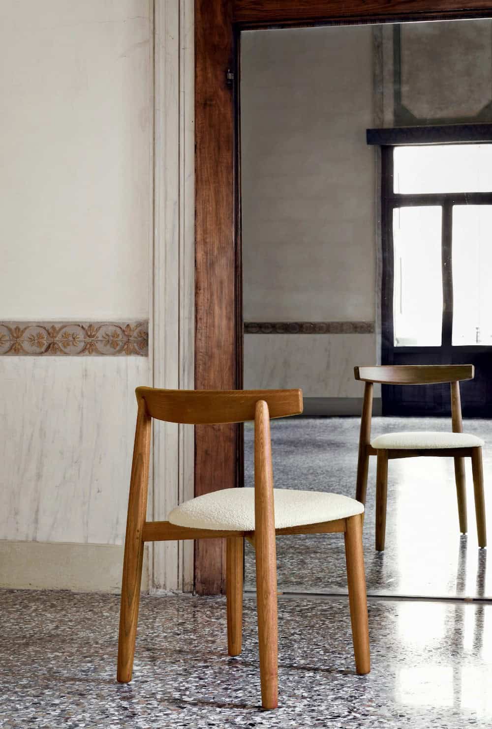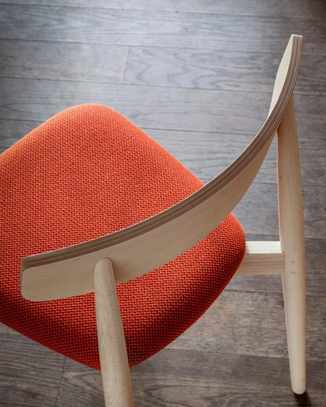 The Claretta Side Chair is made of a solid Ash frame, stained to factory wood stain.