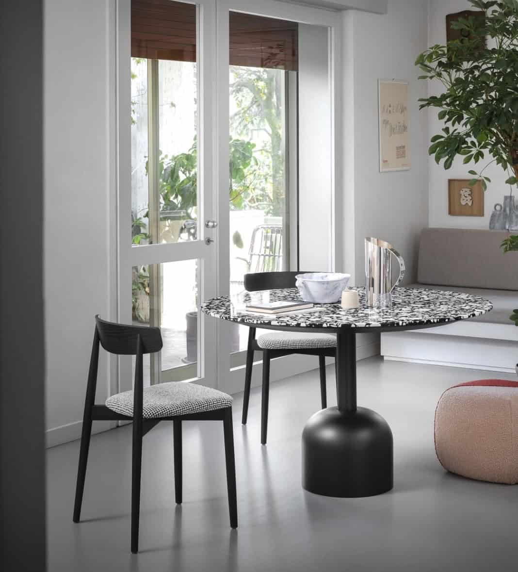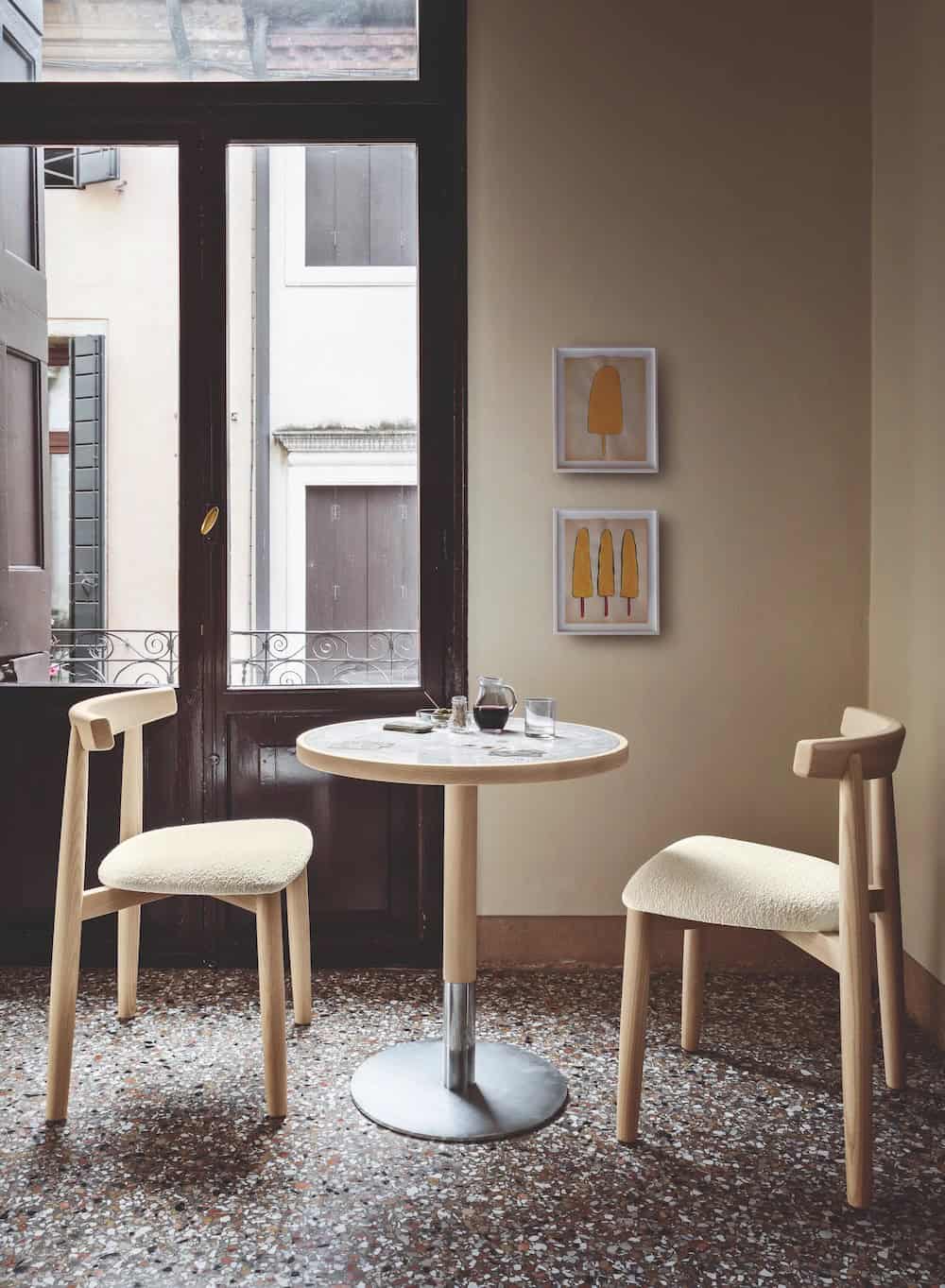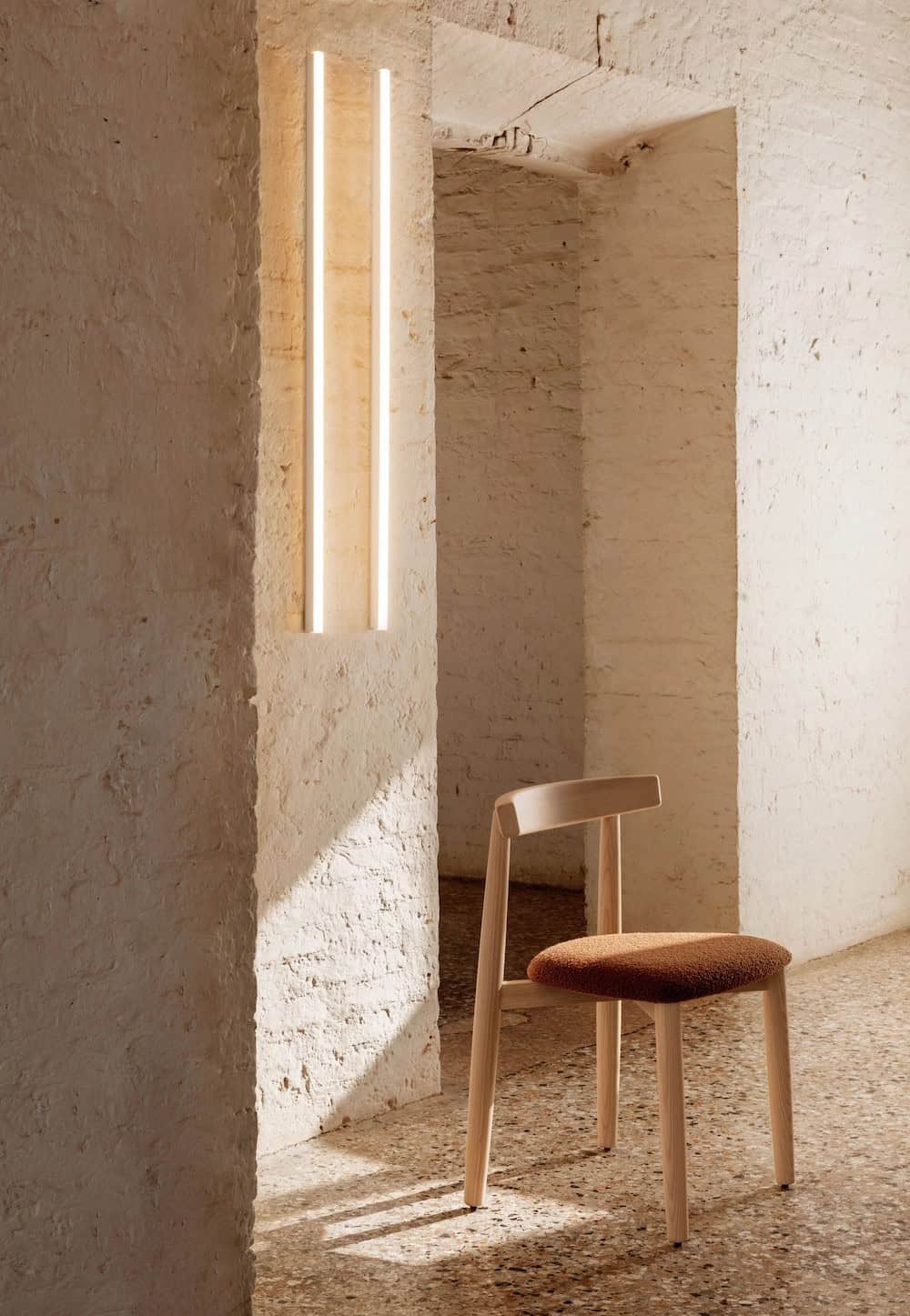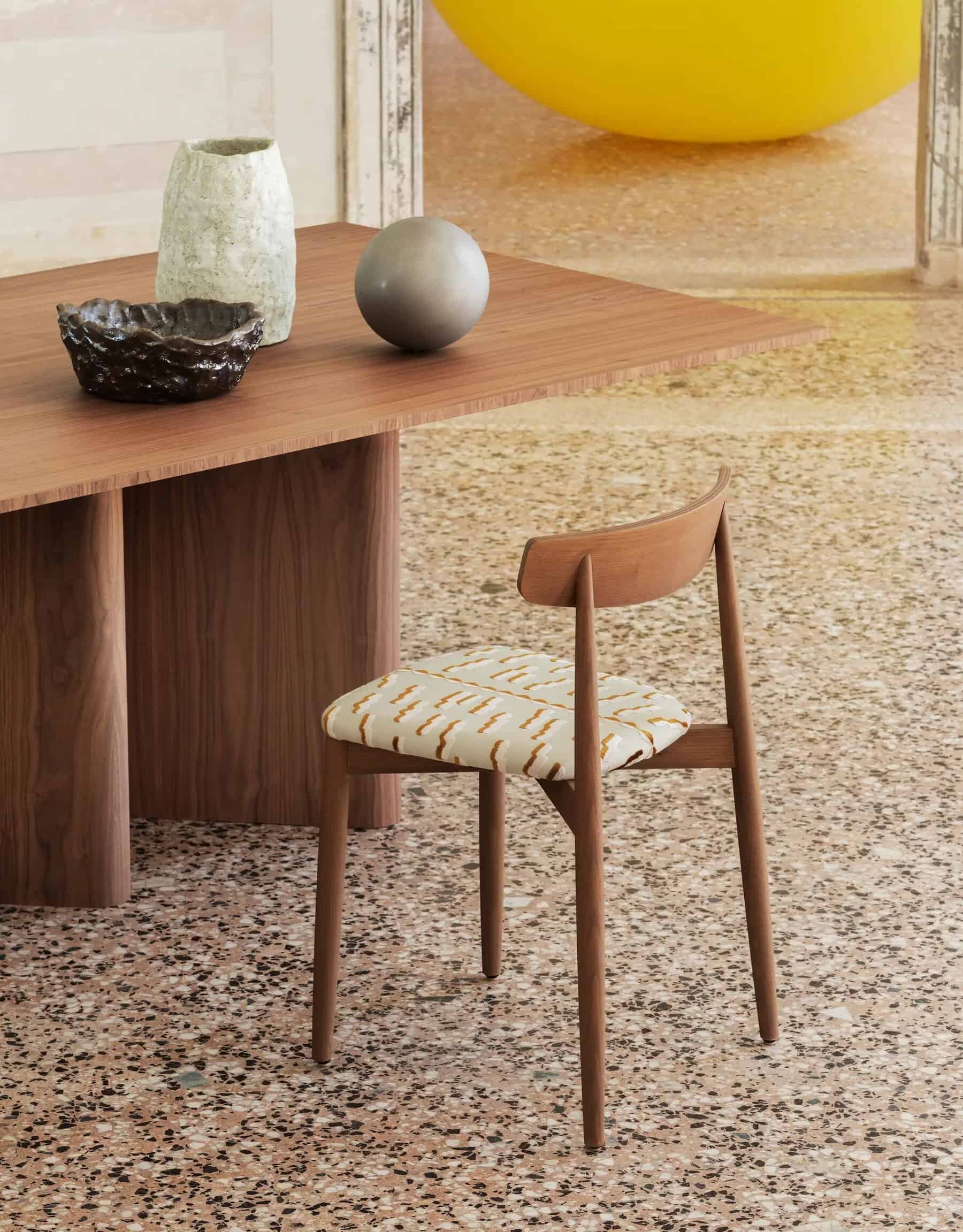 The Claretta Side Chair is made of a solid Ash frame, stained to factory wood stain.