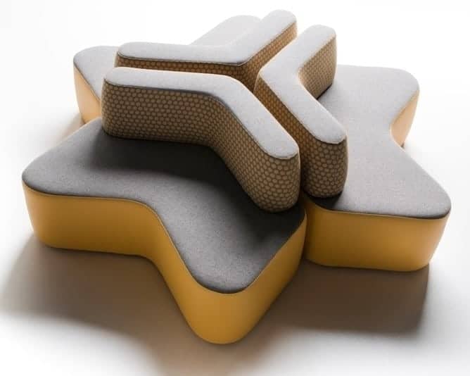 The Cross Pouffe is made of a wooden frame padded in polyurethane foam.