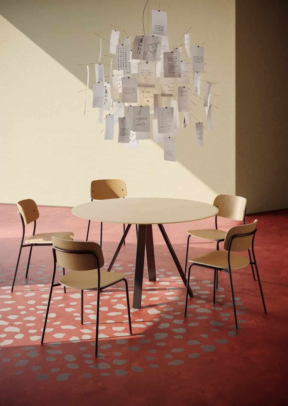 The Daily Side Chair has a timber seat and back with a steel frame, available in black or white.