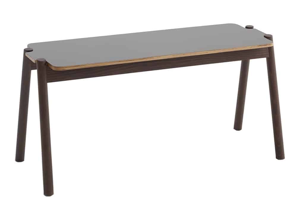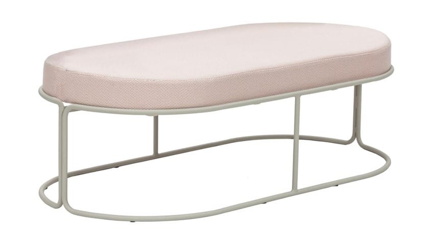 The Diana Bench has a metal powder-coated frame with an upholstered seat pad.