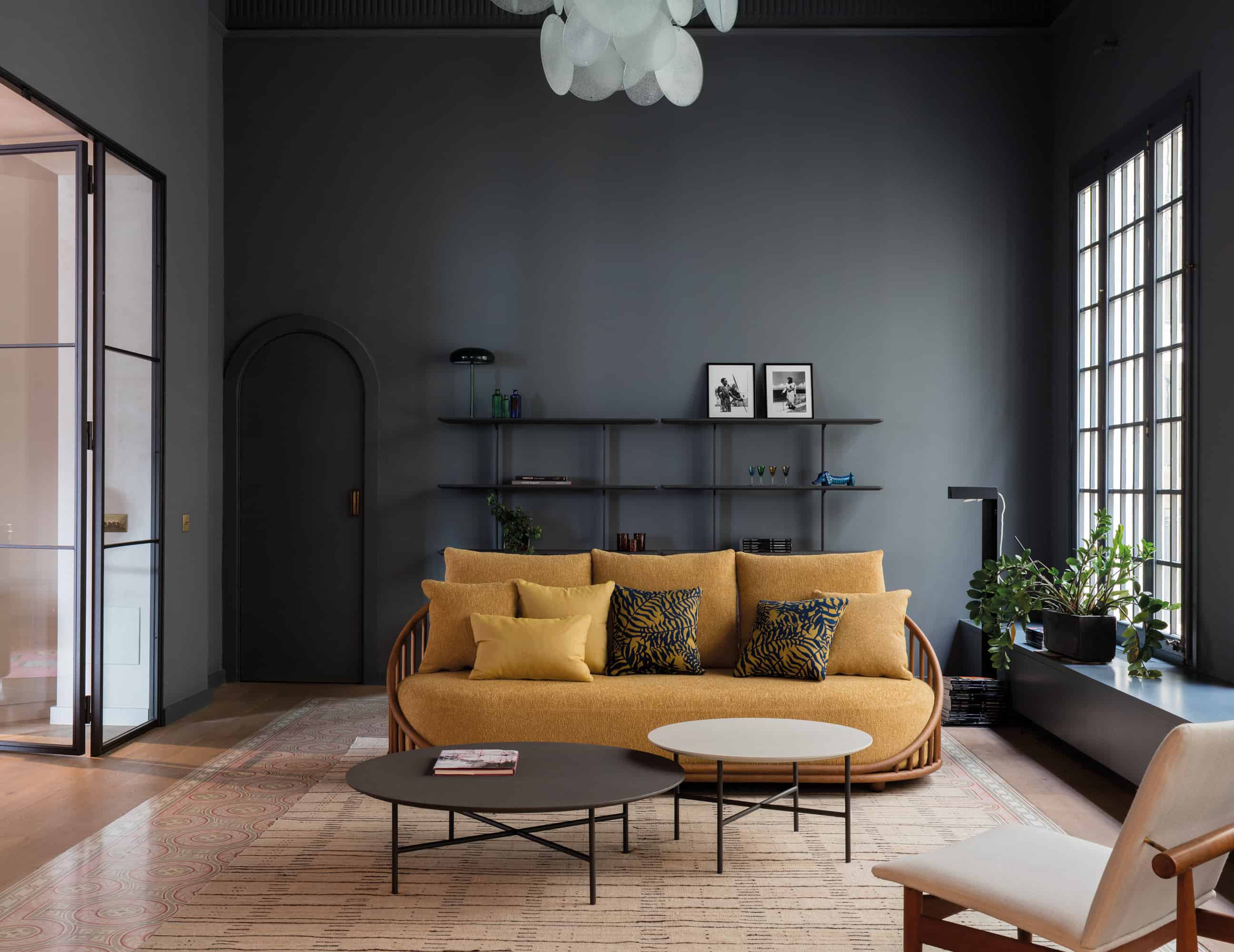 The Fender Sofa has a fully upholstered seat and back with a metal frame, available in a range of powder-coated colours.