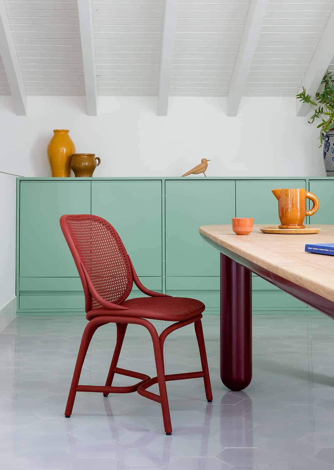 The Frames Side Chair is made of a Bentwood Frame and Rattan detail.