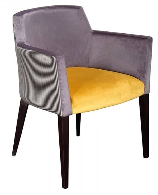 The Jasy Armchairfeatures Solid Beech Wood frame and fully upholstered Seat and Back. Upholstery available in any Fabric, Faux Leather or Leather.