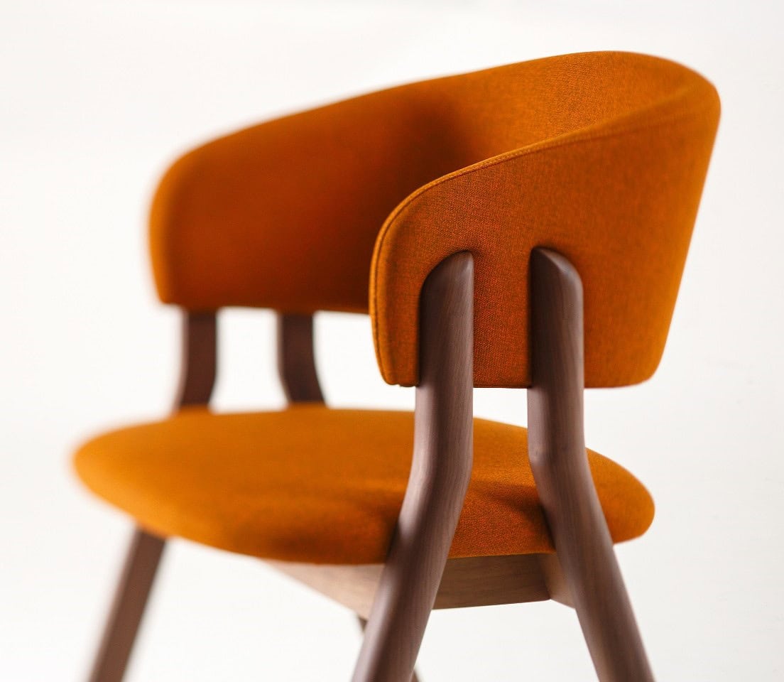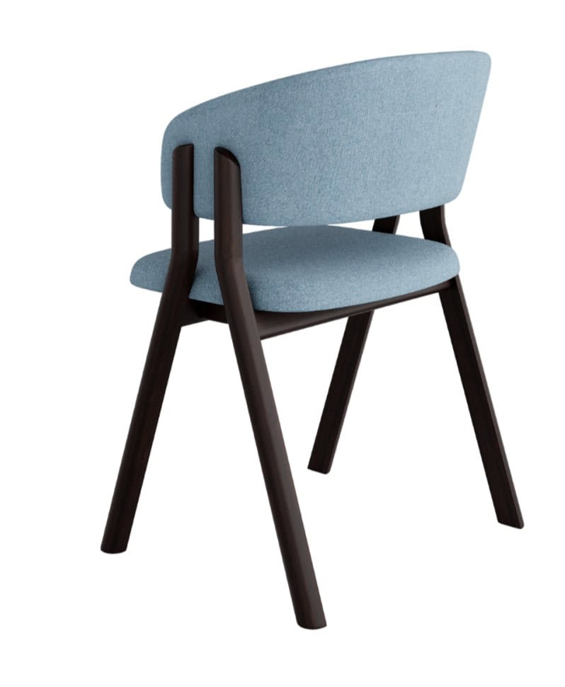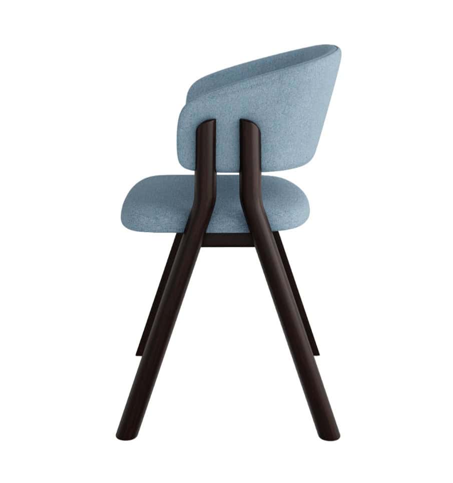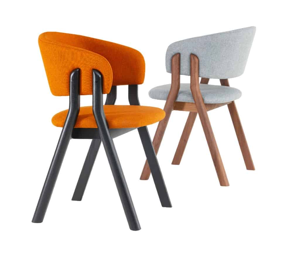 The Lambda armchair has a solid beech frame finished to various factory wood stains.