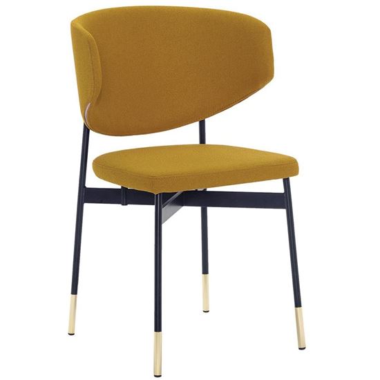 The Lola Armchair is made of a Metal frame finished in Charcoal, Black or Mustard.