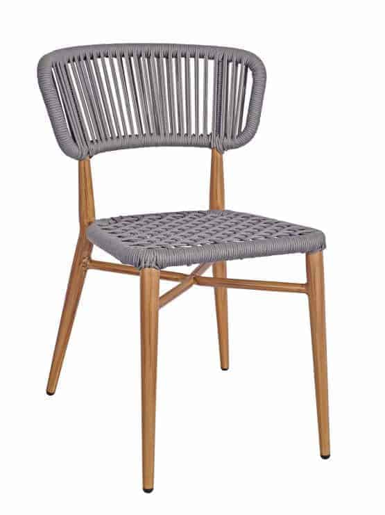The Madrid Side Chair is made of an Aluminium frame finished in Wood or Grey.