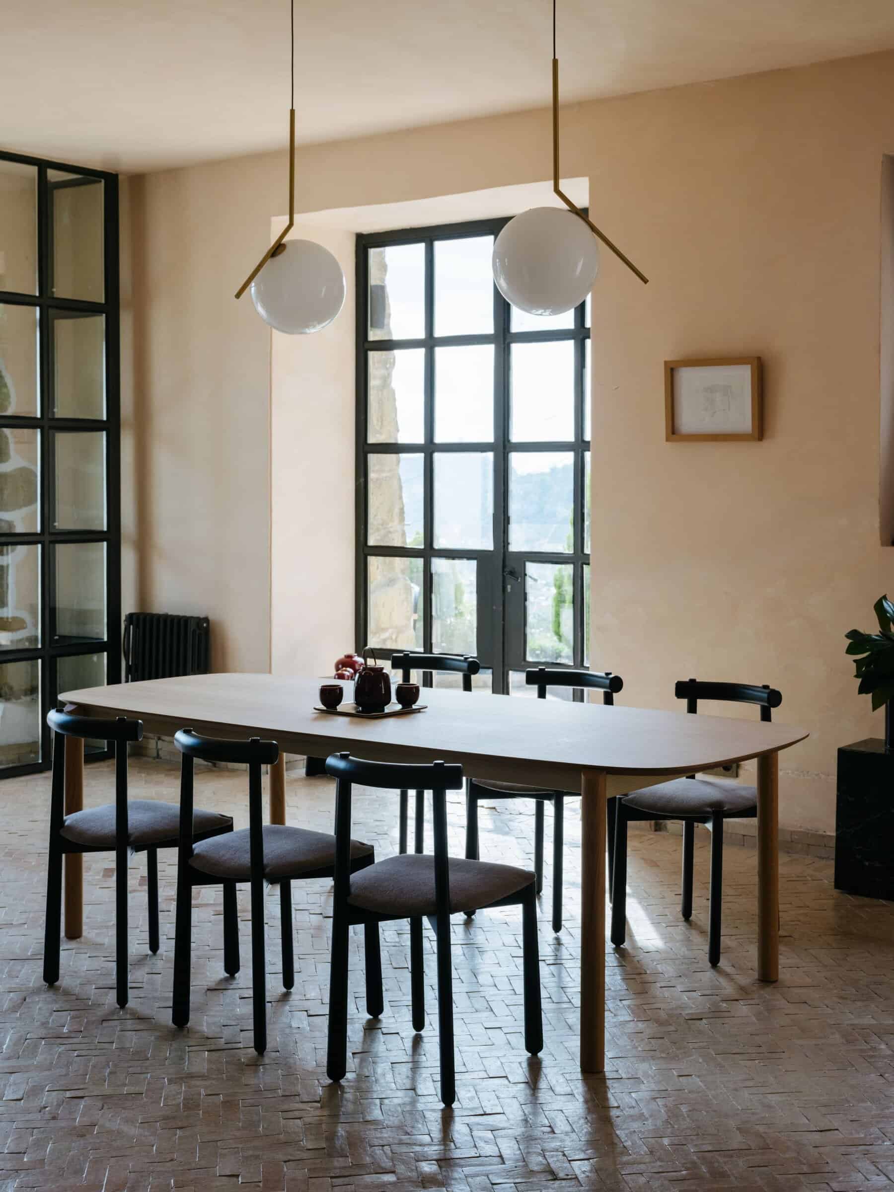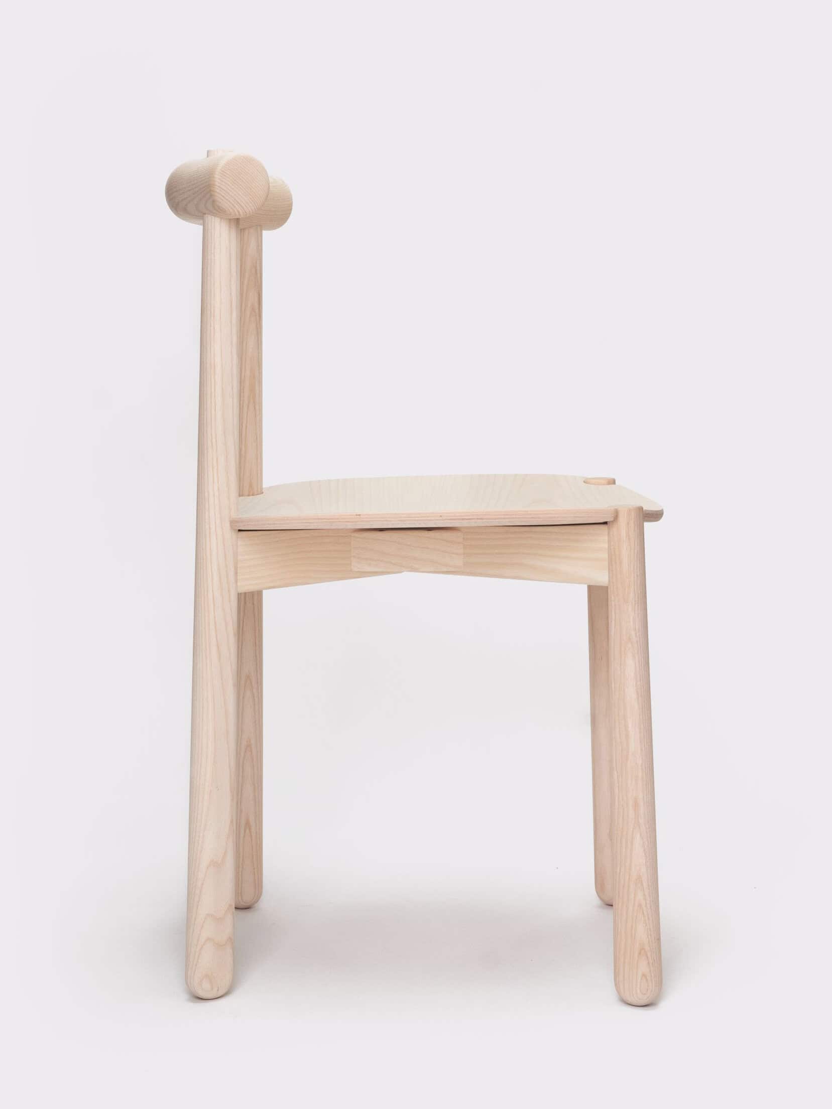 The Mibu side chair has a solid ash frame with or without an upholstered seat.