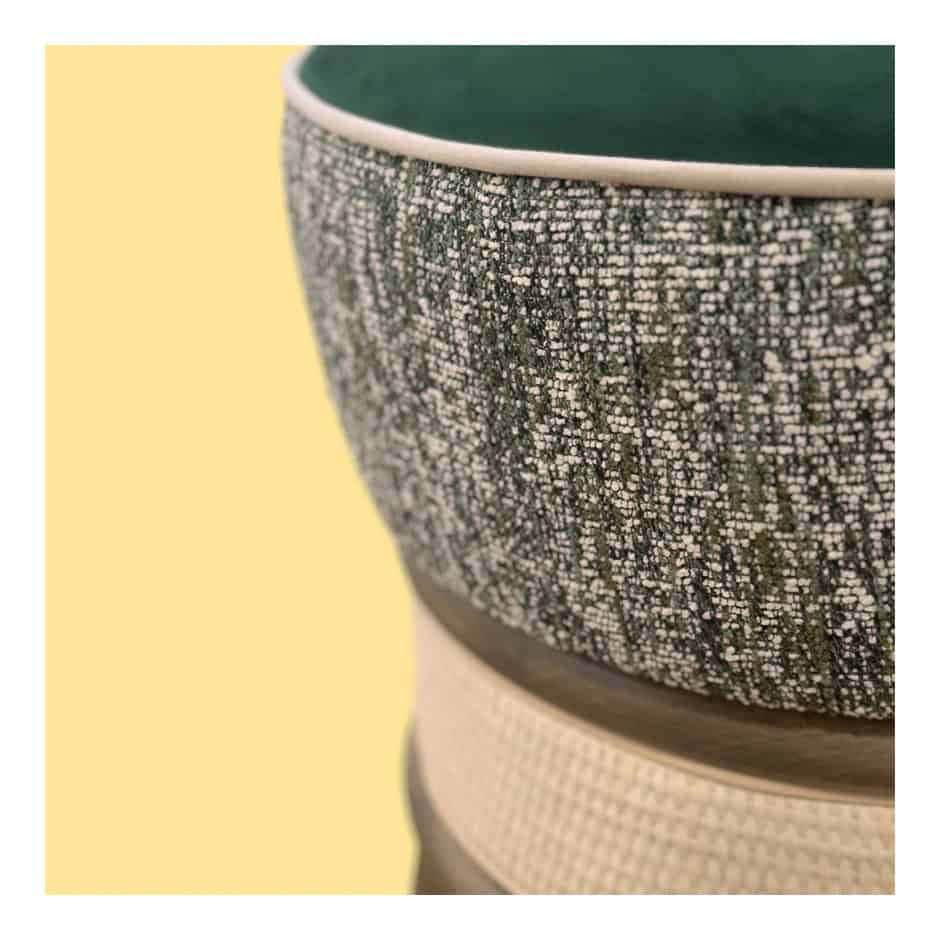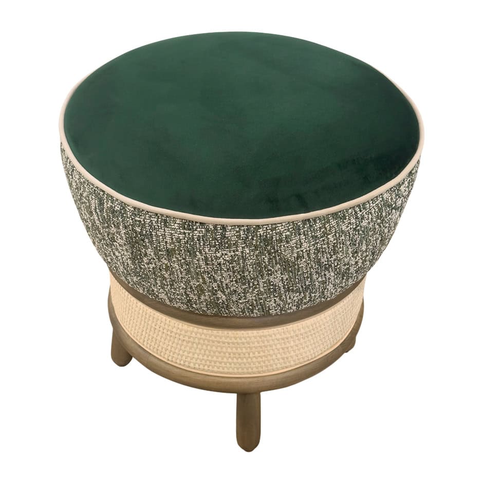 The Miko pouffe elegantly combines, upholstery, woodwork and cane together for a classy finish.