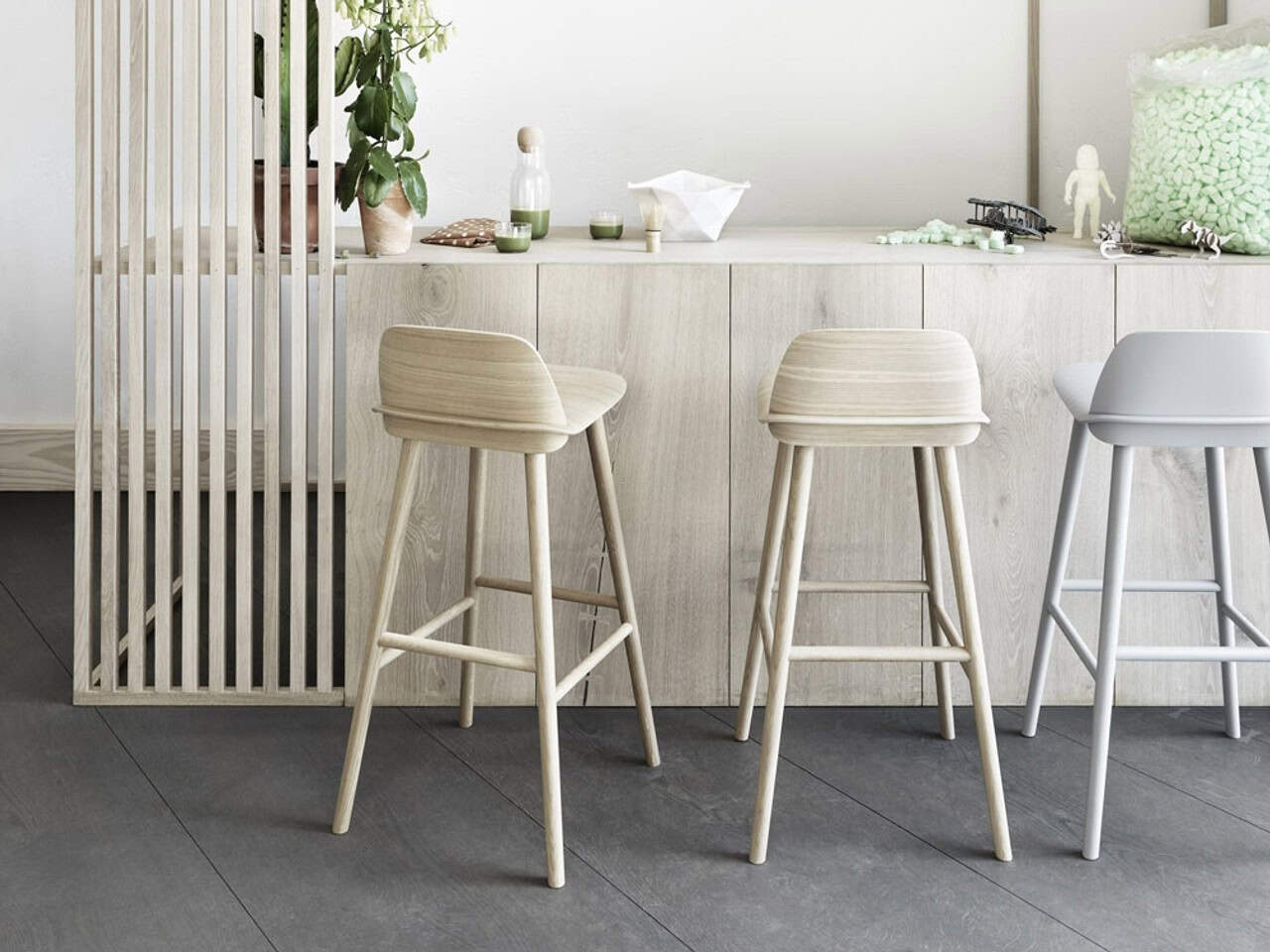 The Nerd High Stool is made from an Oak wood and stained to factory wood stains.