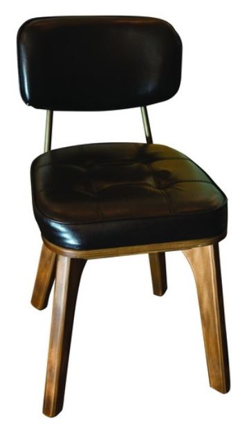 The Nevada Side Chair has beech legs, partial metal framework, and an upholstered seat and back.