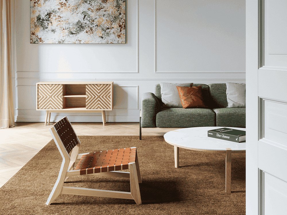The Odhin Lounge Chair has a solid timber frame, available in oak or walnut.
