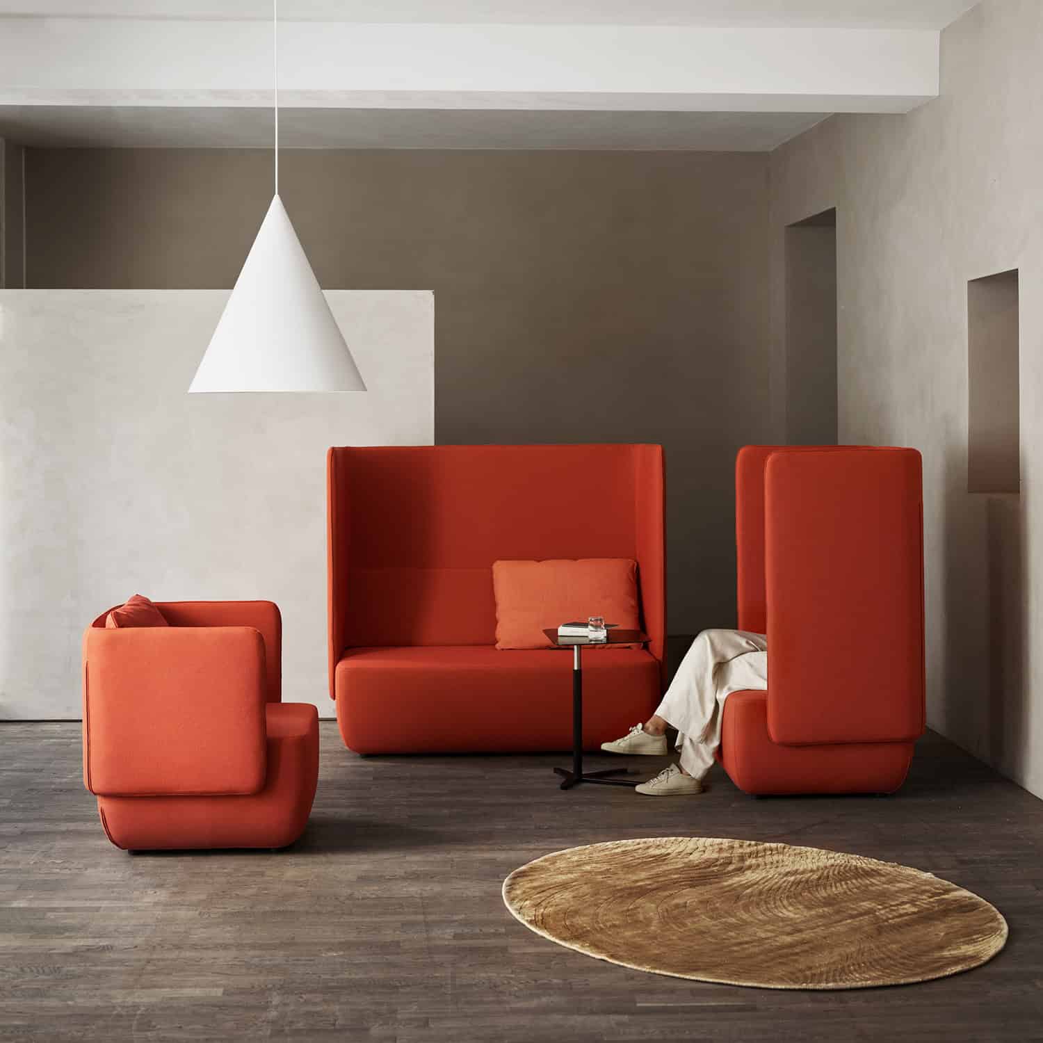 The Opera high lounge chair is fully upholstered in factory fabrics or COM (COM to be tested first)