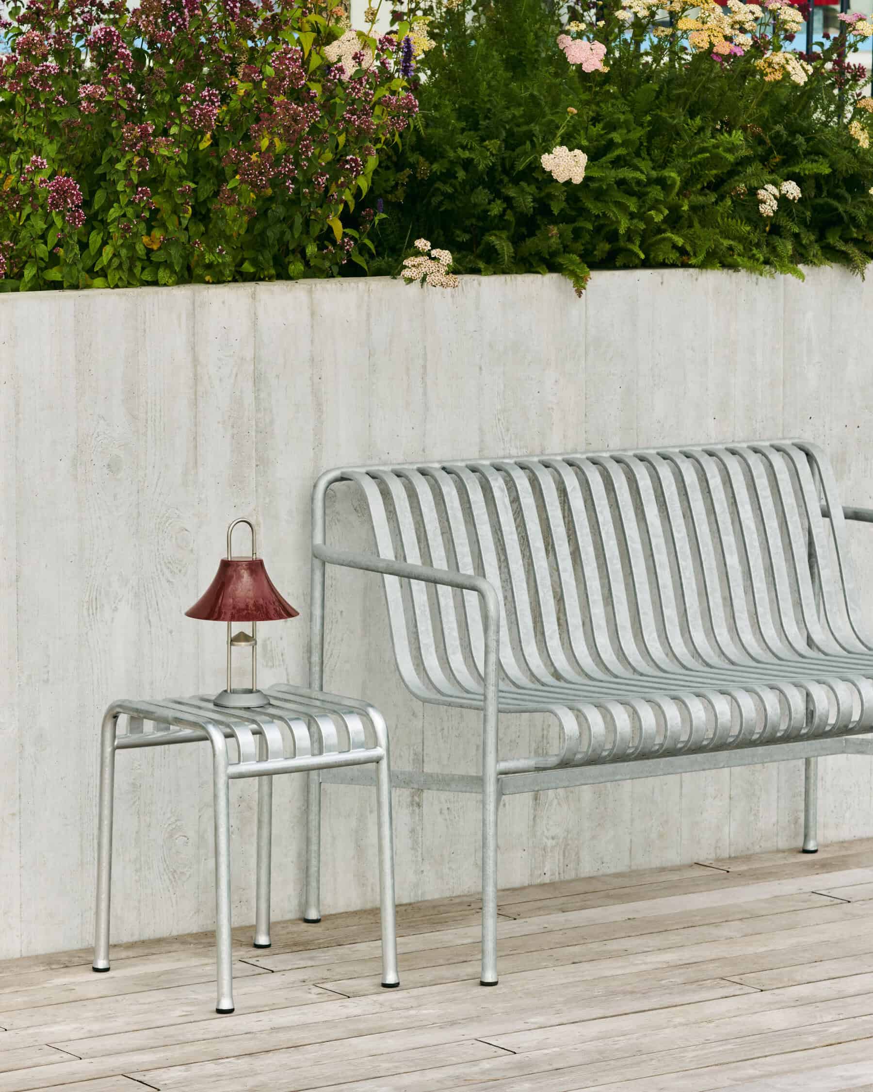 The Palisade low stool is available in Green, Anthracite, White or Red.