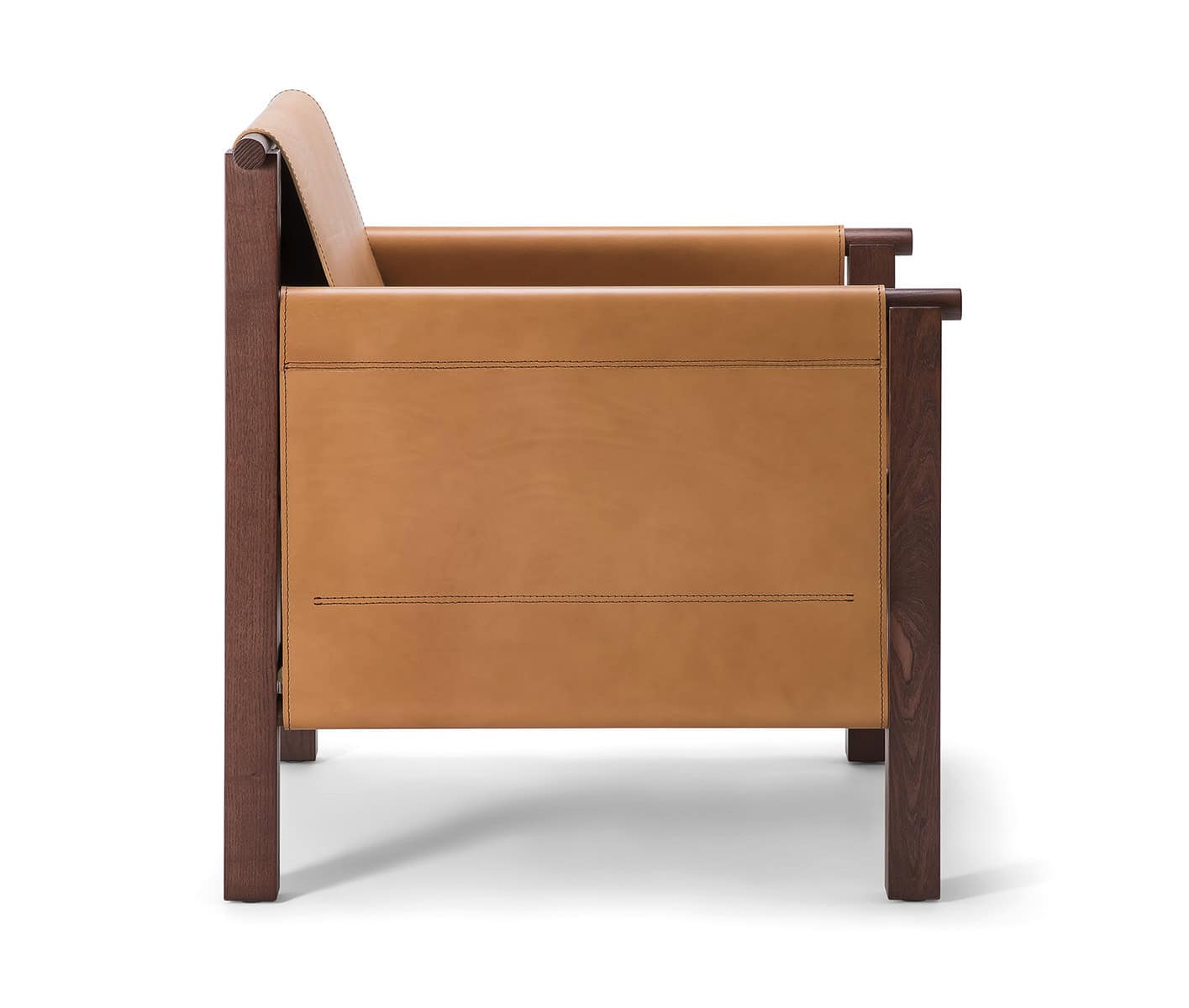 The Penelope leather lounge chair has a solid ash wood frame & is available in various factory stains.