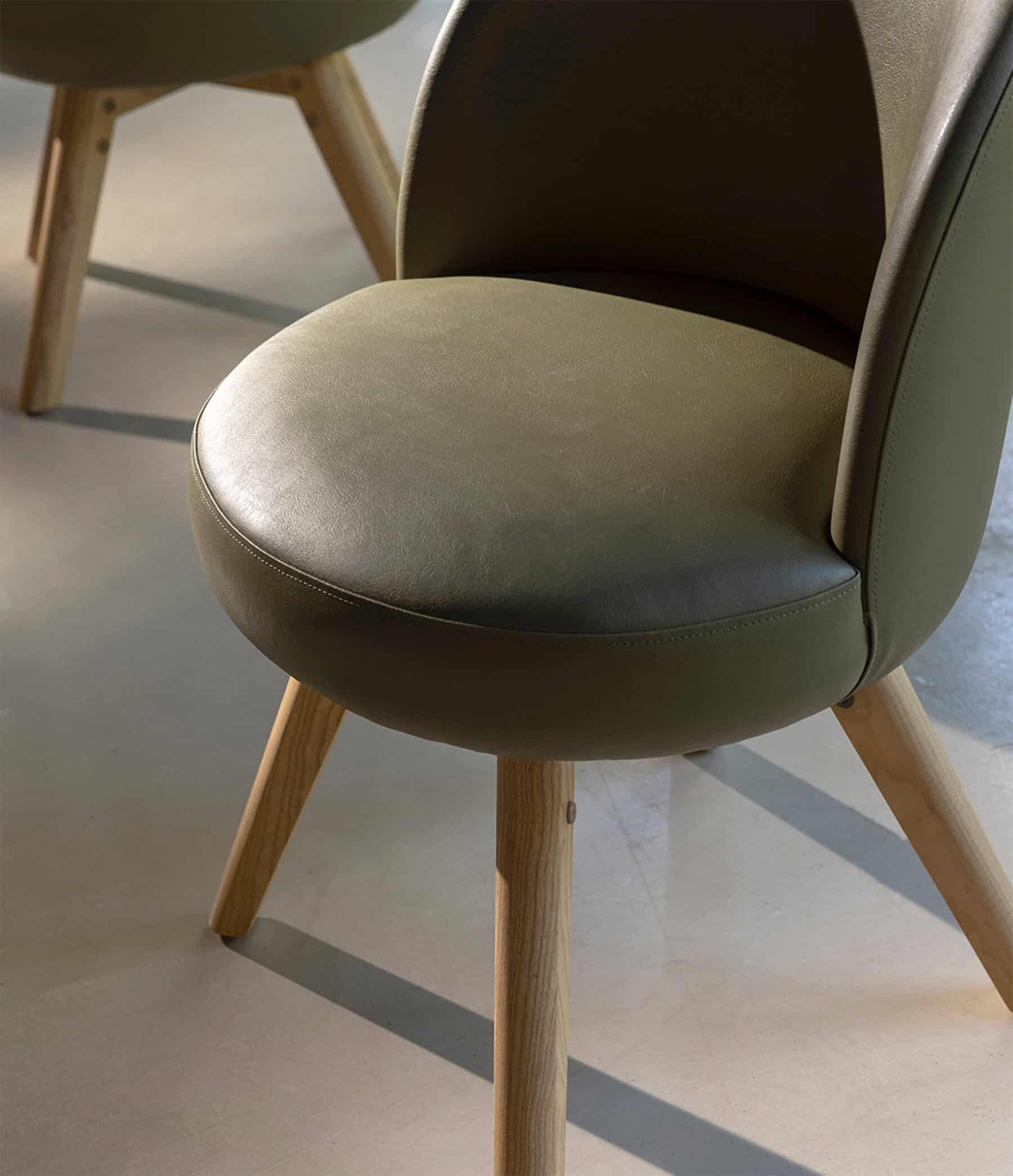 The Phil side chair has a solid beech frame finished to various factory wood stains.