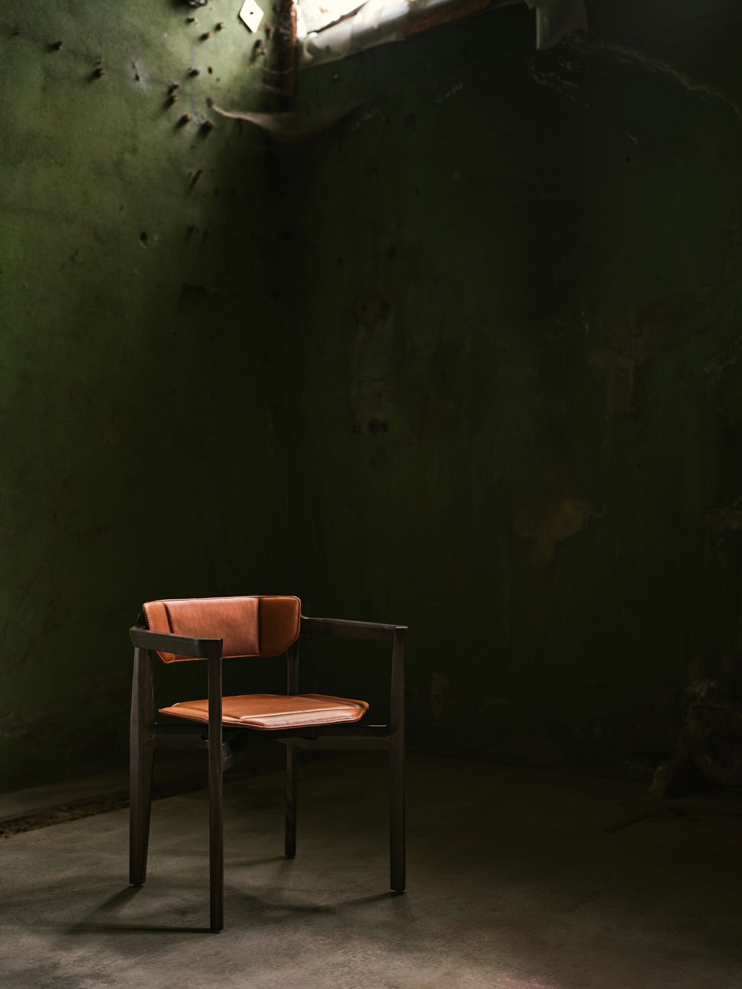 The Rasa armchair has a beech frame stained to various factory woods stains & upholstered in factory fabrics/leather or COM.