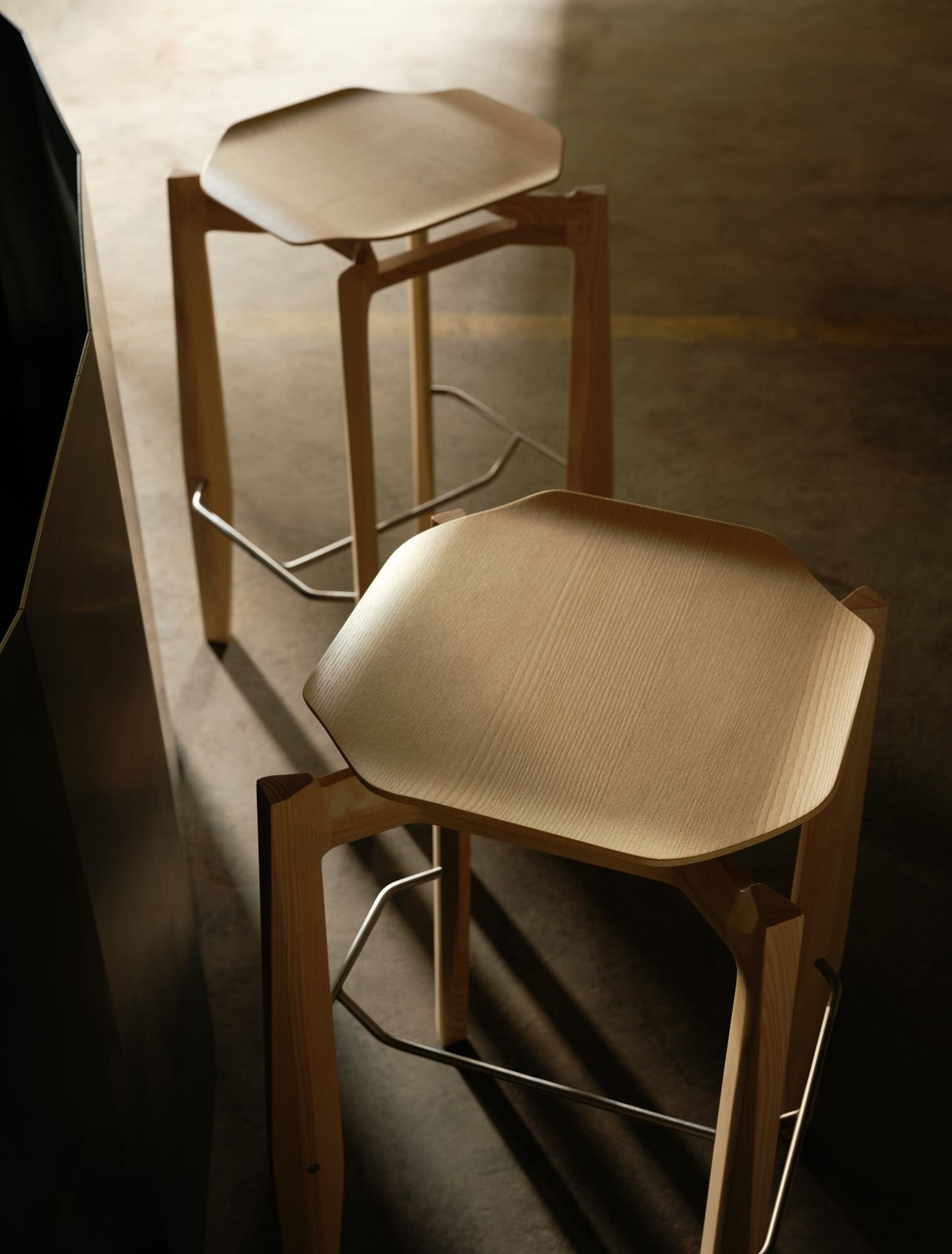 The Rasa high stool has a beech frame stained to various factory woods stains & upholstered in factory fabrics/leather or COM.