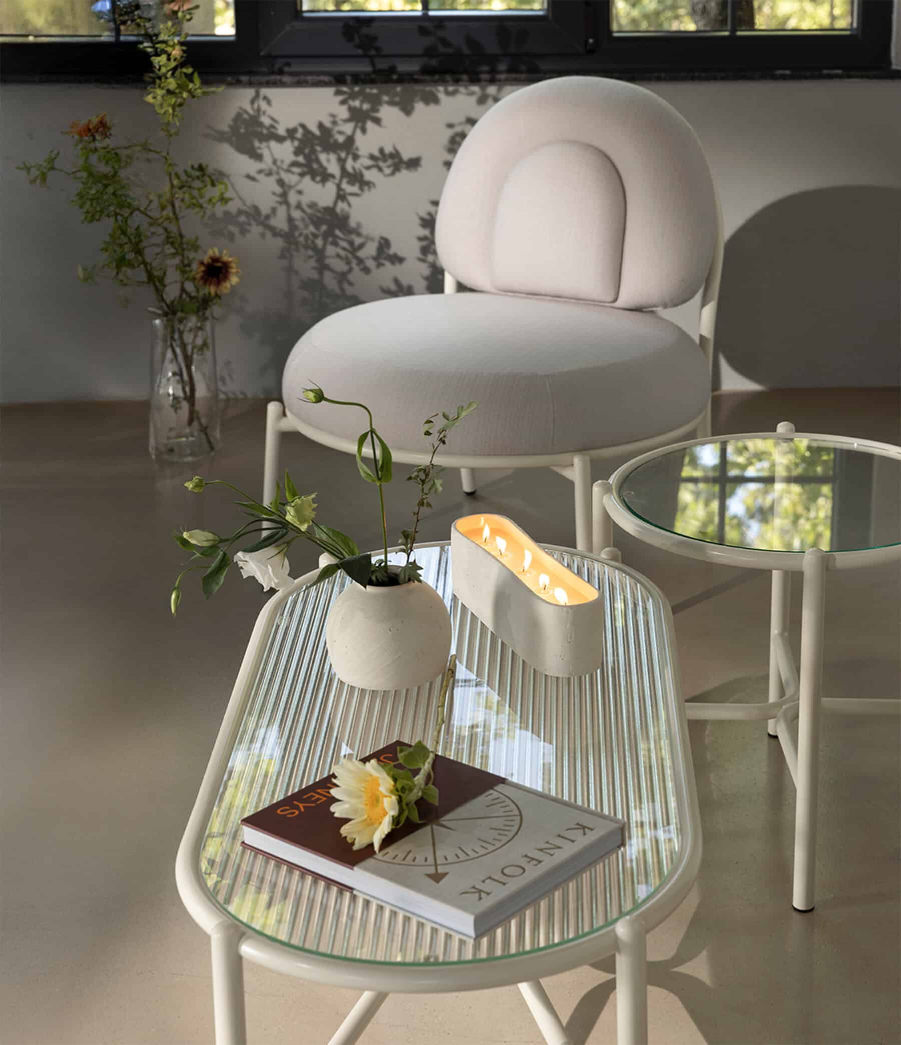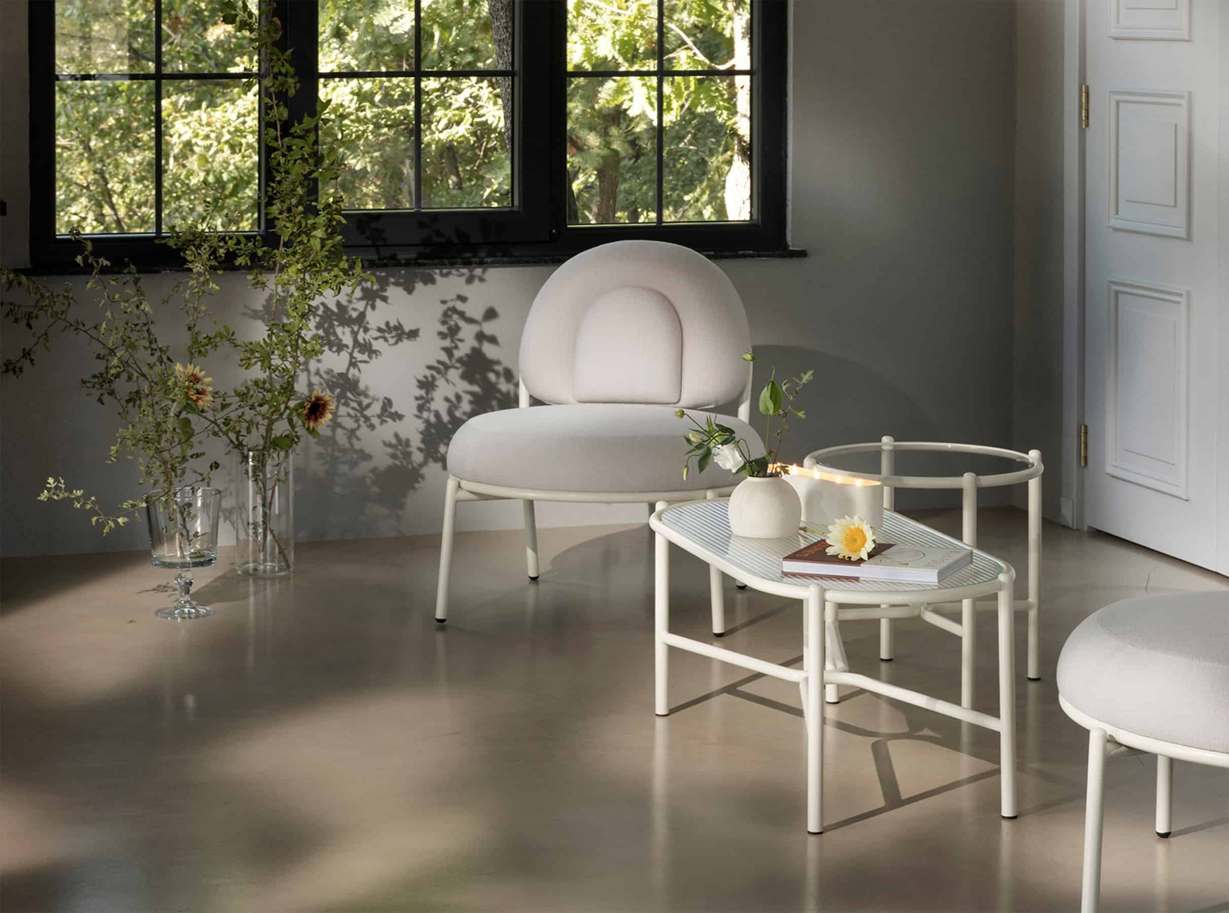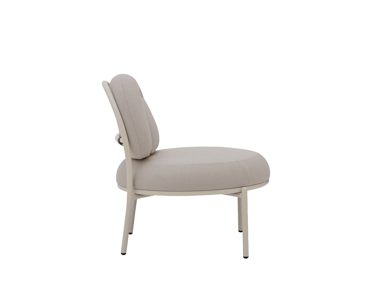 The Rise lounge chair with arms has an aluminium steel frame powder coated to various factory finishes.
