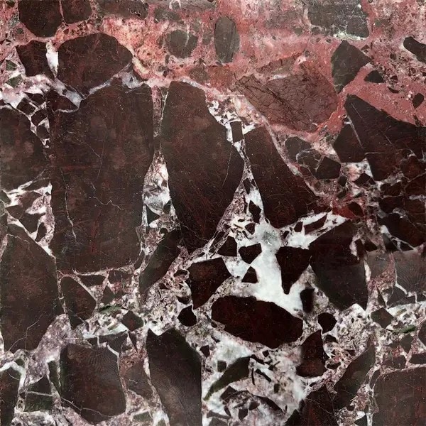 The Rosso Levanto Marble tops are Red wit h the distinguished black and white vein. Available in different sizes and Edge profiles.