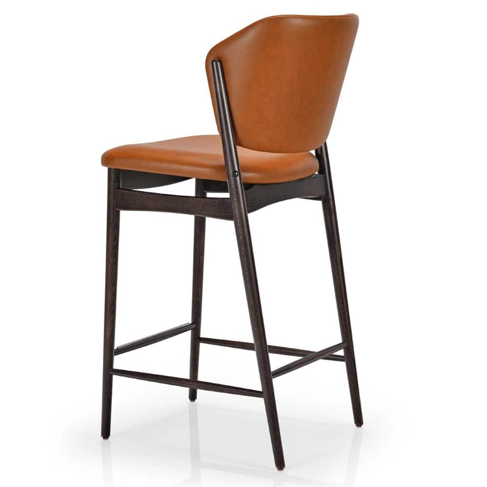The Silene high stool has a beech frame stained to various factory woods stains & upholstered in factory fabrics/leather or COM.