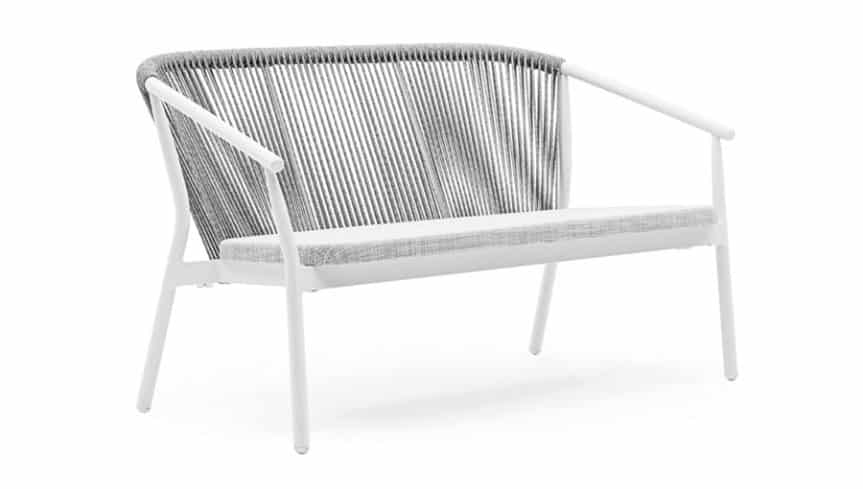The Smart High Stool has a powder-coated aluminum frame in Grey or White.