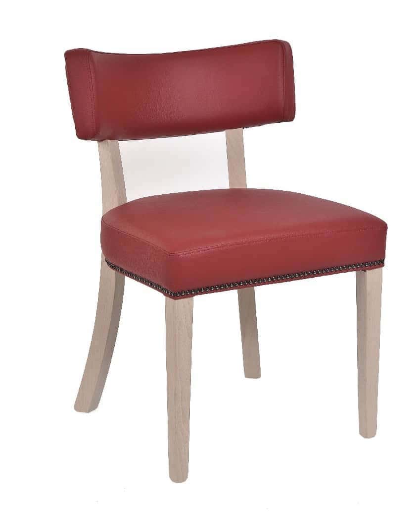 The Sofia Side Chair has an oak frame stained to factory wood stain, with an upholstered seat and back.