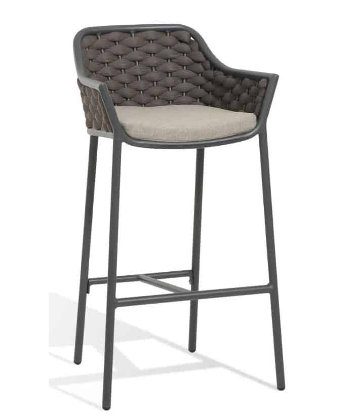 The Tahiti High Stool is made of an Aluminium frame finished Black, Taupe, Anthracite or White.