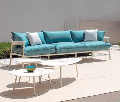 The Terramare Outdoor Sofa is available as 2 or 3 seater. It feature aluminium frame, finish available in 5 different colours. Seat and back cushions included and comes in 8 different colours.