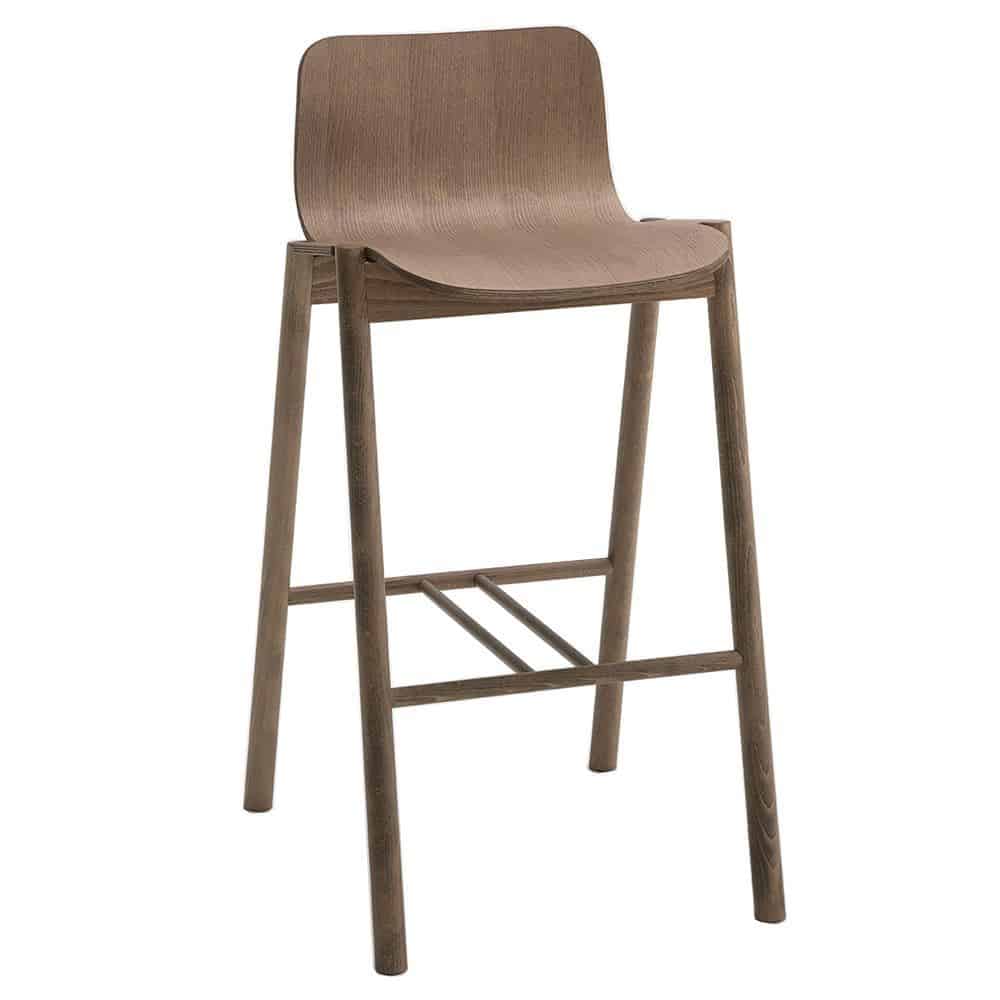The Tipi High Stool is a wooden frame stained to factory wood stain.