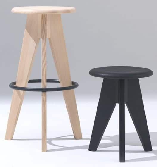 The Tommy High Stool features 3 leg solid Beech Wood frame and Metal foot rail. Frame in natural Wood or with White, Black, Grey or Red finish. Available with height adjustable seat at extra cost.