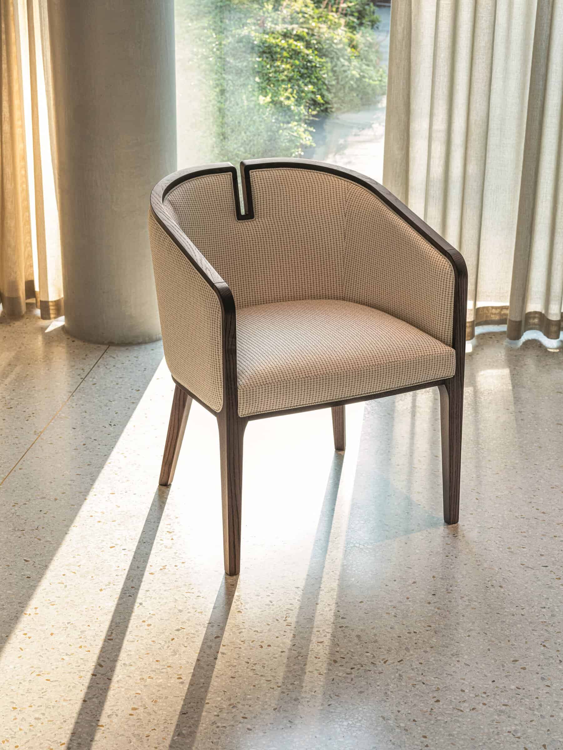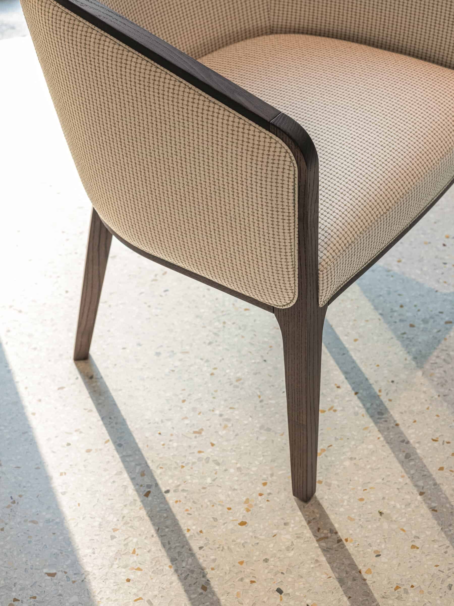 The Vida armchair has a solid ash frame finished to various factory wood stains.