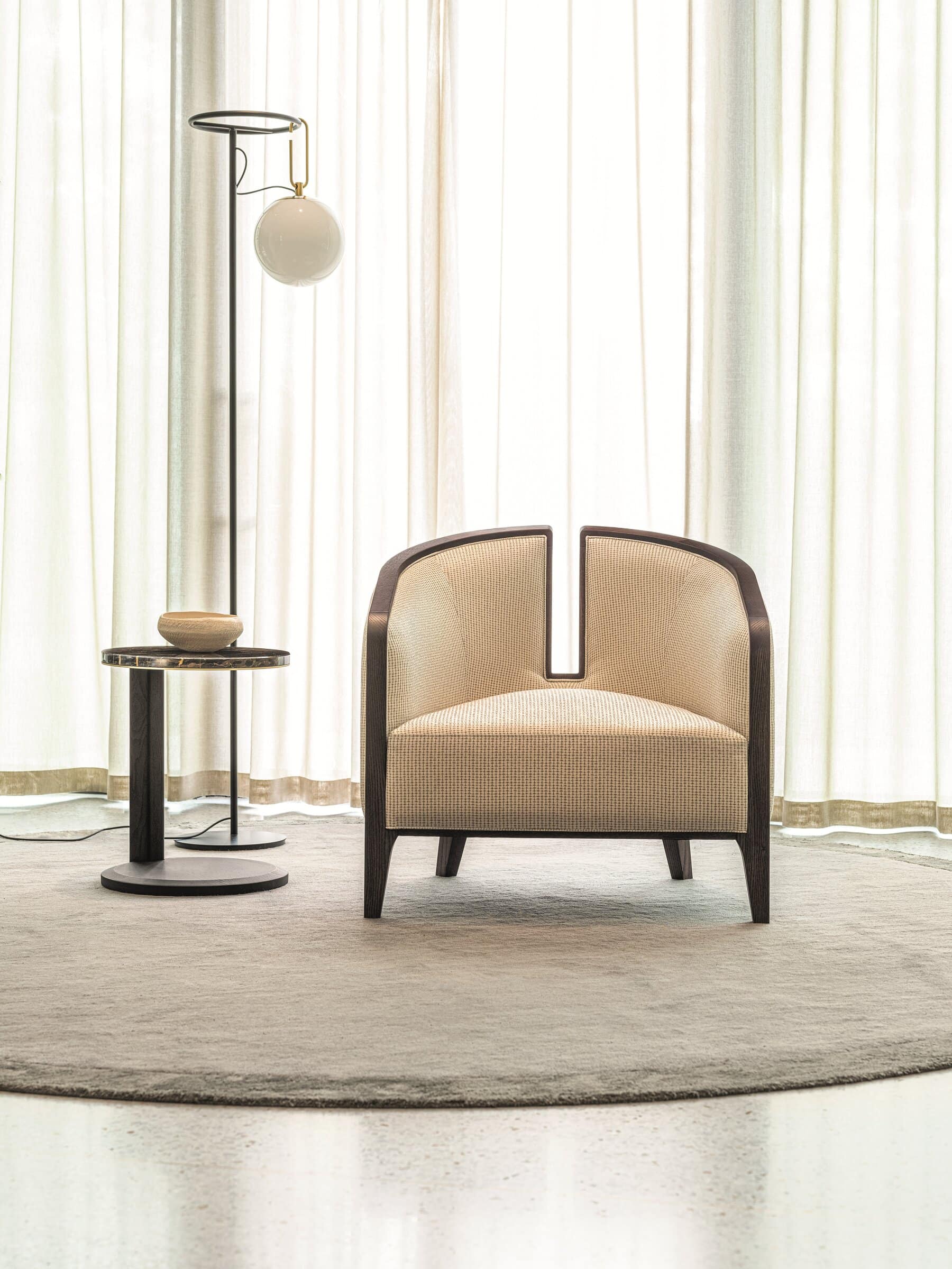 The Vida lounge chair has a solid ash frame finished to various factory wood stains.