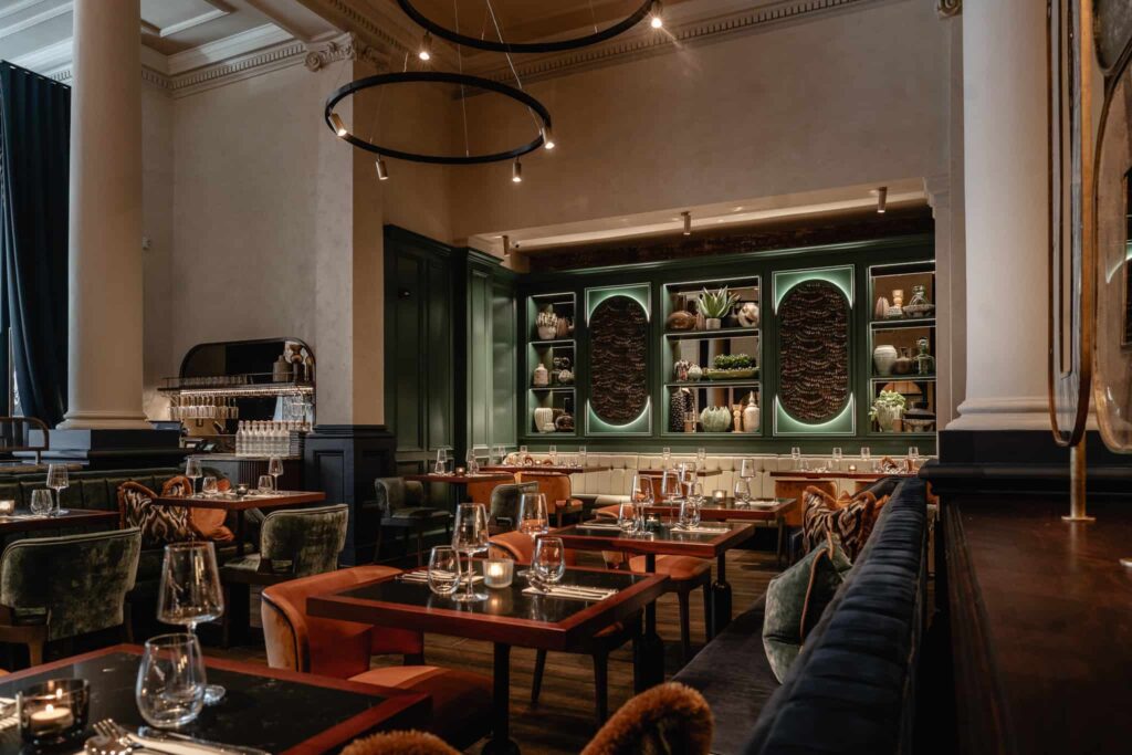 The Tea chairs are complemented by rich leather and velvet upholstery, perfectly balancing the stunning decor and heritage location.